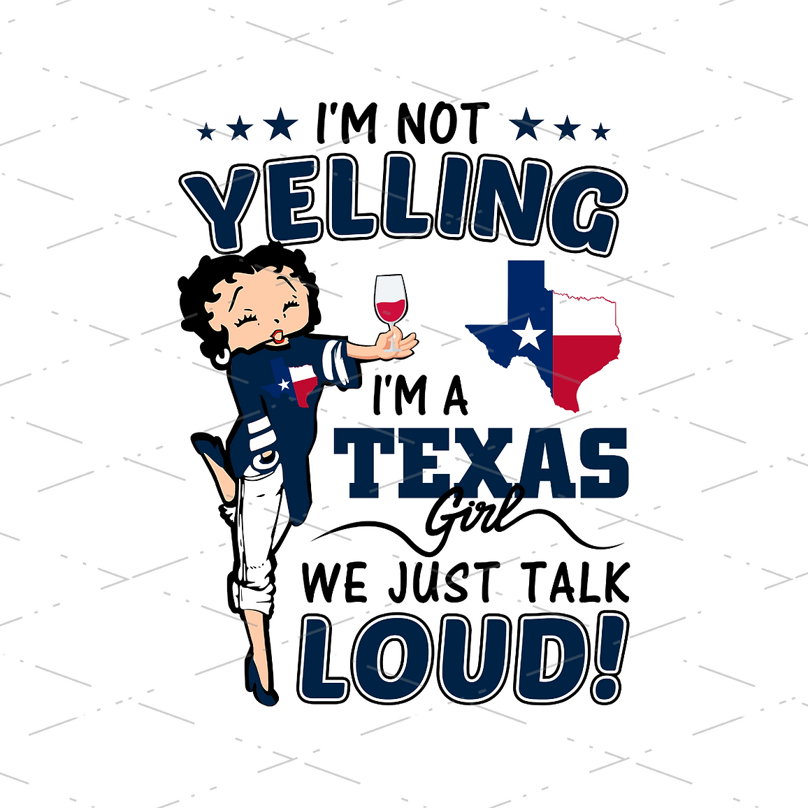 Betty Boop Texas Girl, I’m Not Yelling I’m A Texas Girl We Just Talk Loud For American Girl, Sublimation Designs, USA Flag Day PNG file